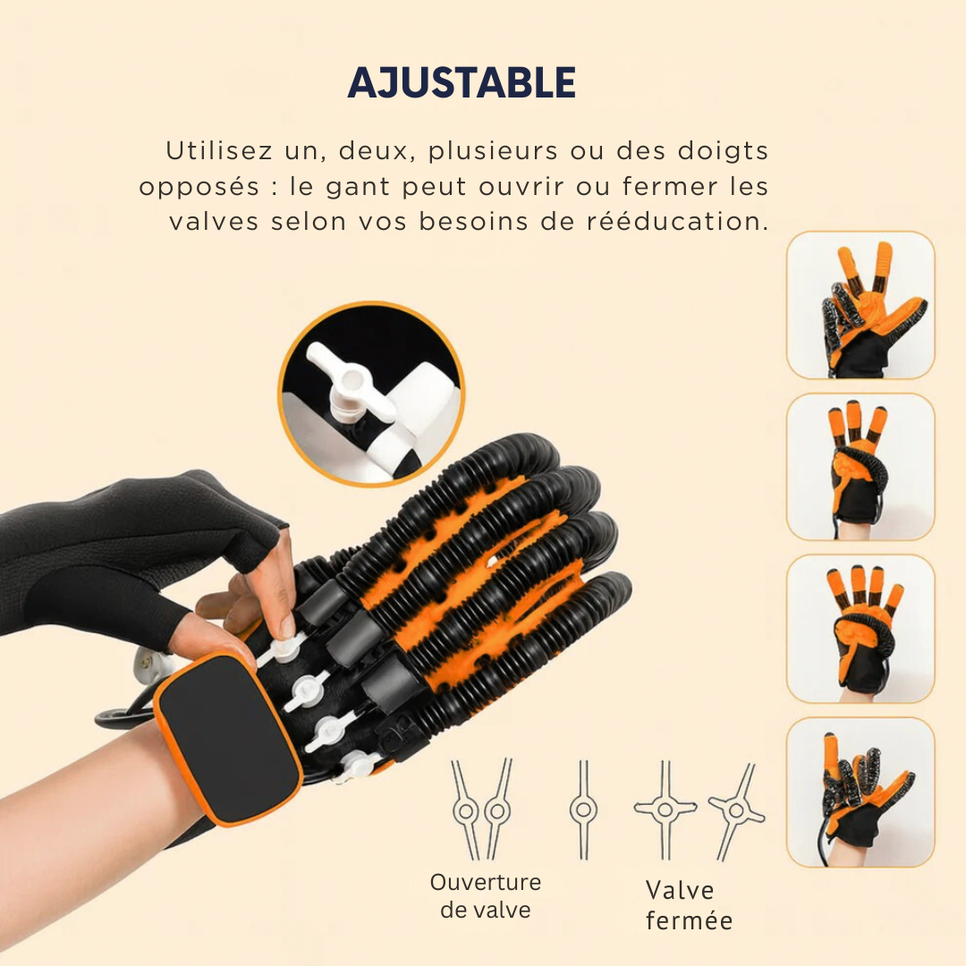 Ajustez chaque doigt selon vos besoins et retrouvez progressivement force, précision et mobilité. Un entraînement simple, efficace et adaptable à toute phase de rééducation.