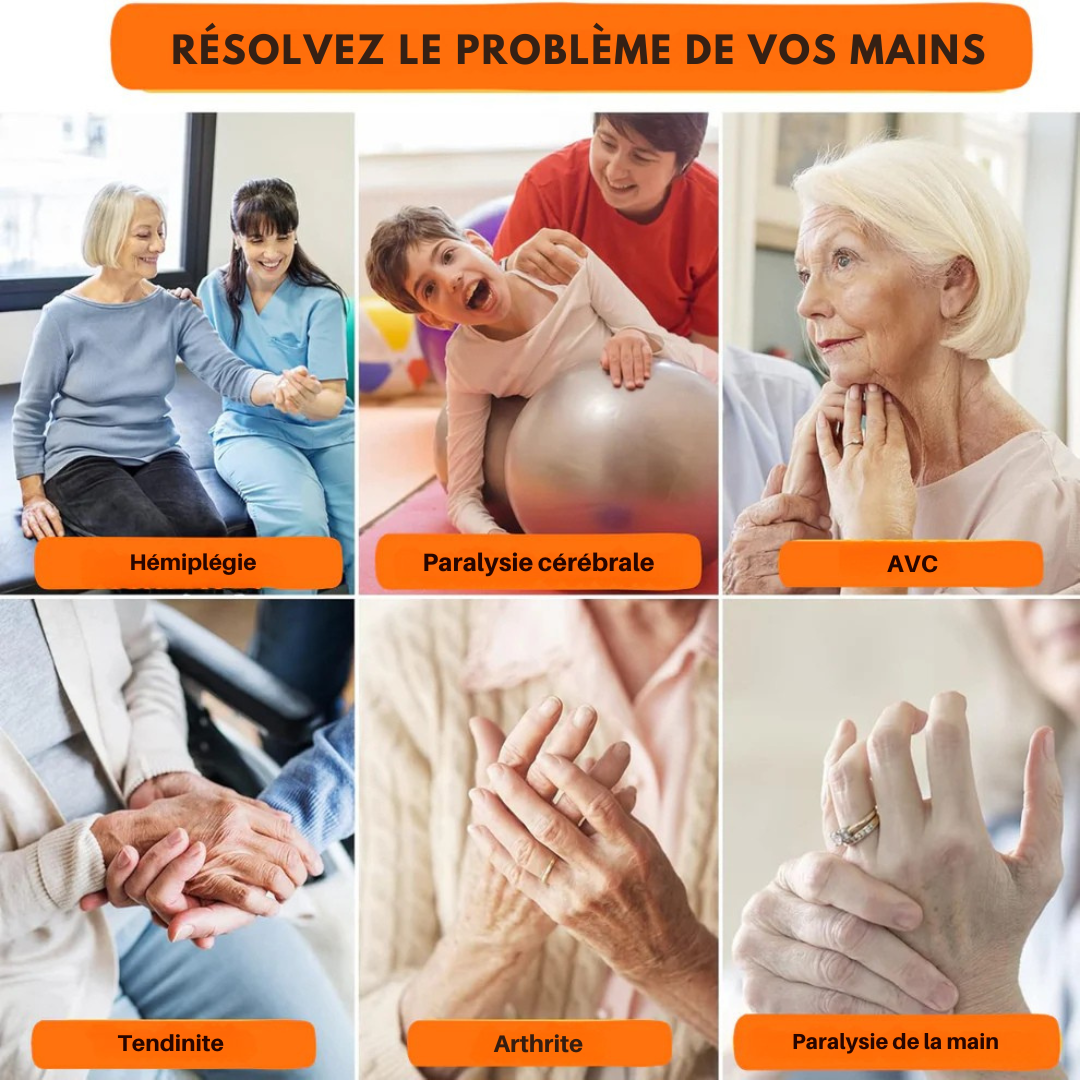 Idéal pour l’hémiplégie, l’arthrite, les séquelles d’AVC ou la paralysie : le gant facilite les mouvements essentiels et stimule une récupération progressive et durable.